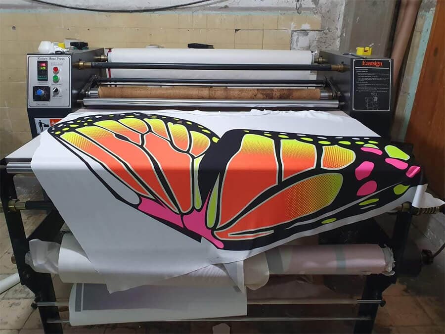 Sistema que utilizamos cuando se tiene la necesidad de sublimar rollos de tela corridos y a todo el ancho de la misma, para la confección de prendas o estampado de patrones.