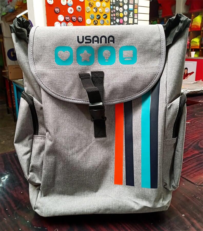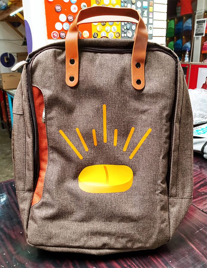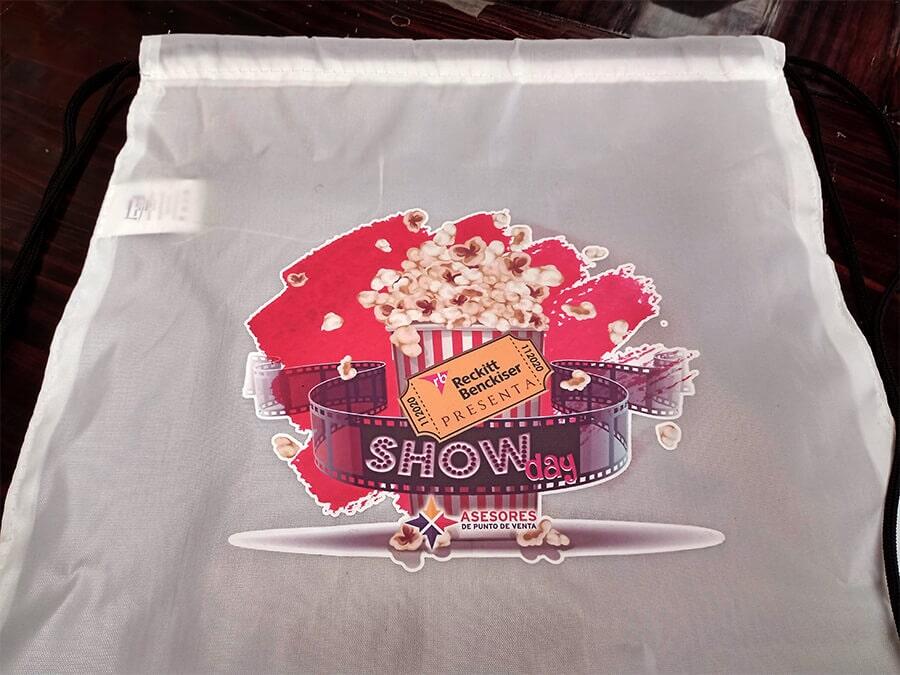 Con este sistema de personalización podemos realizar impresiones de alta definición a full color con mayor detalle y poder cortar a registro dando la forma del logotipo o diseño que se requiere, con la opción de realizar producciones desde una pieza, con un acabado de excelente calidad y muy suave al tacto. Es recomendable para la aplicación en textiles de color obscuro, se puede aplicar en gran variedad de artículos, paraguas, mochilas, playeras, gorras etc.