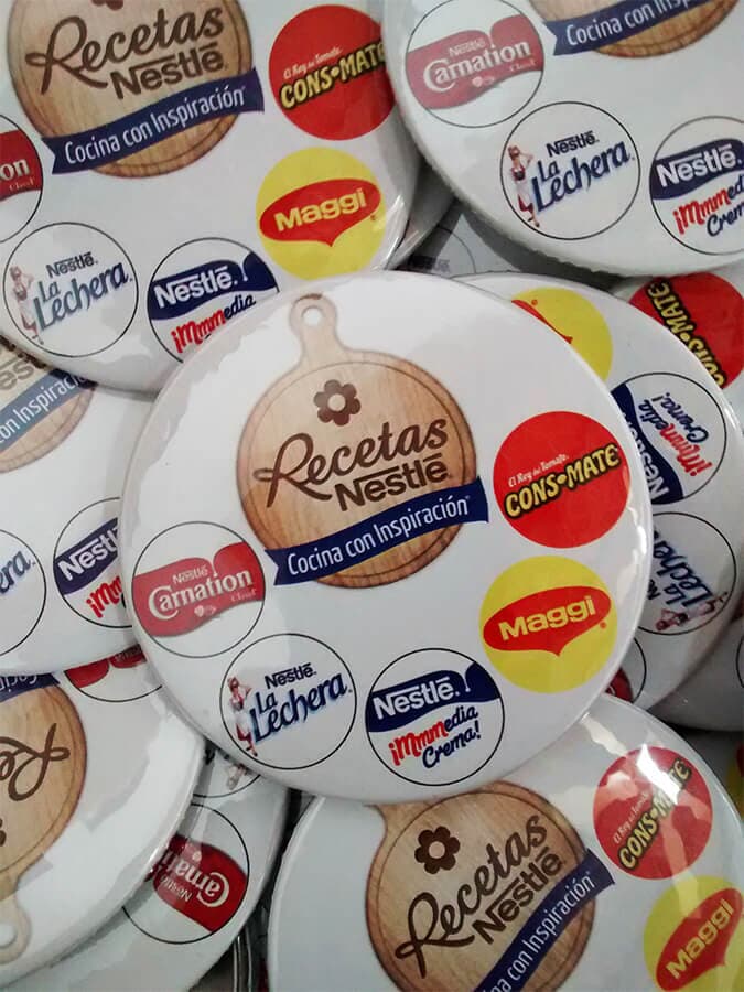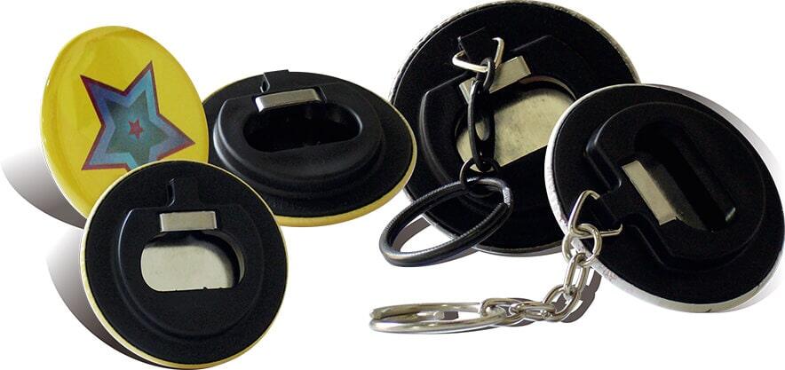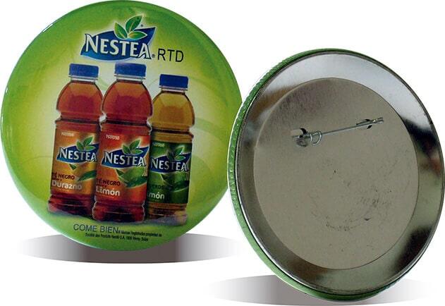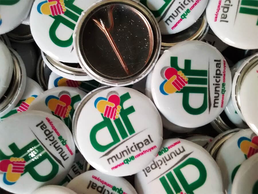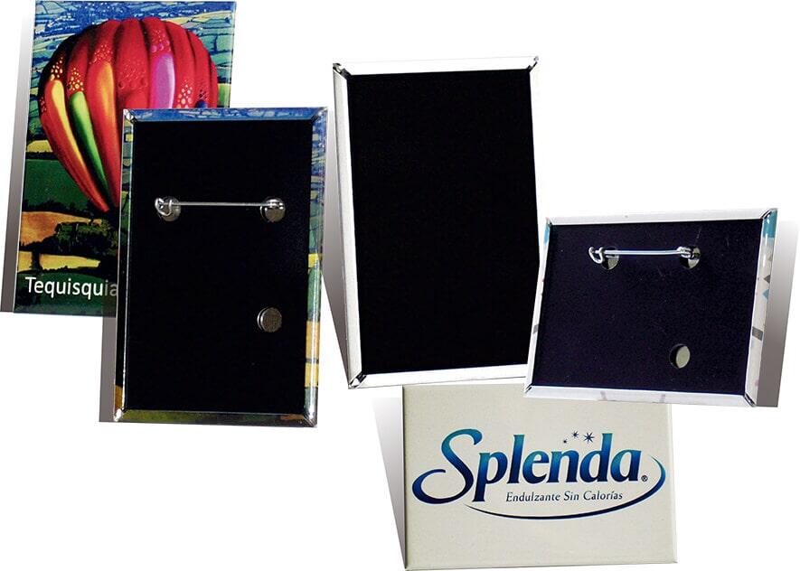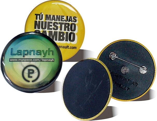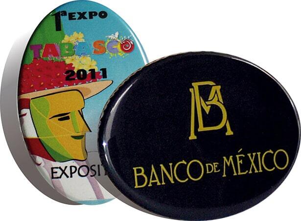Lo tenemos en formas redonda, ovalada, cuadrada y rectangular, esta variedad de botones nos permite seleccionar el que más se adapte a su diseño. Contamos con diferentes tipos de broches de seguro, perico con protección de plástico, pisa corbata, ojal, bulldog y de imán de neodimio con gran fuerza para no perforar las prendas.